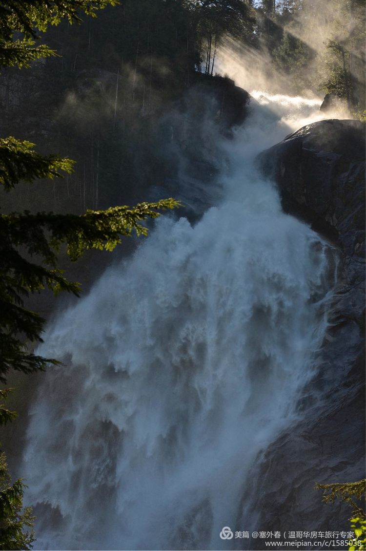 第一站,到达香浓瀑布省立公园(shannon falls)加拿大BC第三大瀑布,现在雪山融化,水量极大,气势磅礴,短途步行,近距离接触大瀑布,摄影,拍照,观瀑布