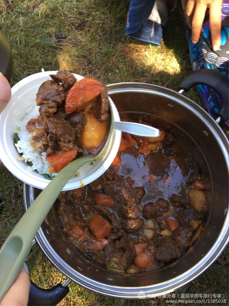 在白兰地瀑布省公园午餐野炊,大家去观瀑布,我们带着电饭煲,起动房车上发电机,等大家游玩回来一锅香喷喷的米饭就蒸好了,我们带着从家炖好牛肉,大家都说好吃,看来吃什么不重要,分在哪里吃,一会一大锅牛肉,米饭就吃光了????
