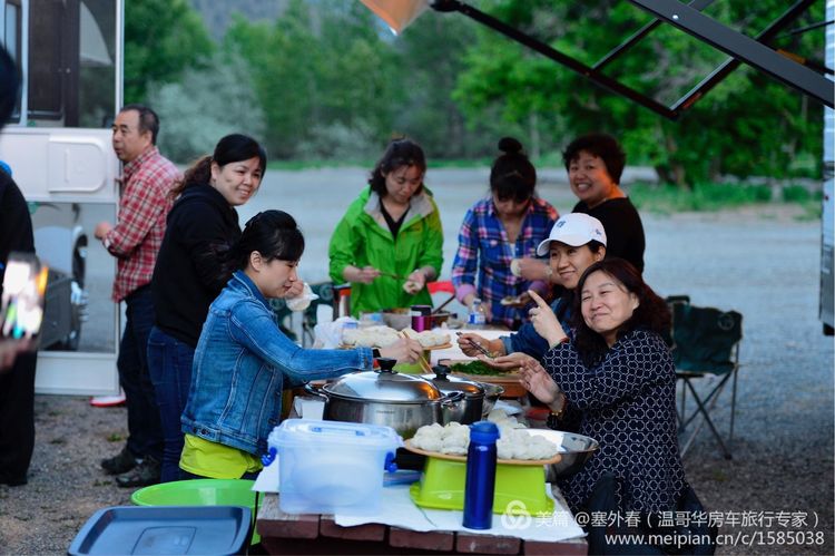 在家做好肉馅,带着饺子皮,来到营地现场一起包水饺,既热闹,又吃的舒服
