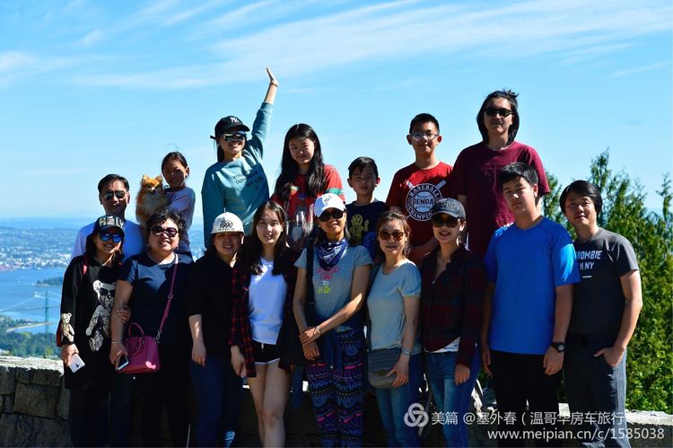 返回最后一站开车到黄柏山上,鸟瞰狮门大桥,温哥华全景,远眺美国贝克雪山,看日落,拍夜景的绝佳观景台,大家在此合影留念。